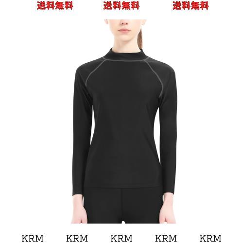 [Barifall] ラッシュガード レディース 長袖 ハイネック 水着 スイムウェア UVカット 吸汗速乾 接触冷感 水陸両用116-bk*gy-XL