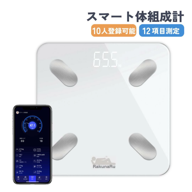 体重計 スマホ 連動 体組成計 体脂肪 体脂肪率 内臓脂肪 ヘルスケア fitbit Googlefit ダイエット 健康管理 BMI 筋肉量 基礎代謝 シンプル コンパクト 薄型 デジタル 乗るだけ で 12項目 を 記録 ( PX-SS01 ) 沖縄・離島配送不可