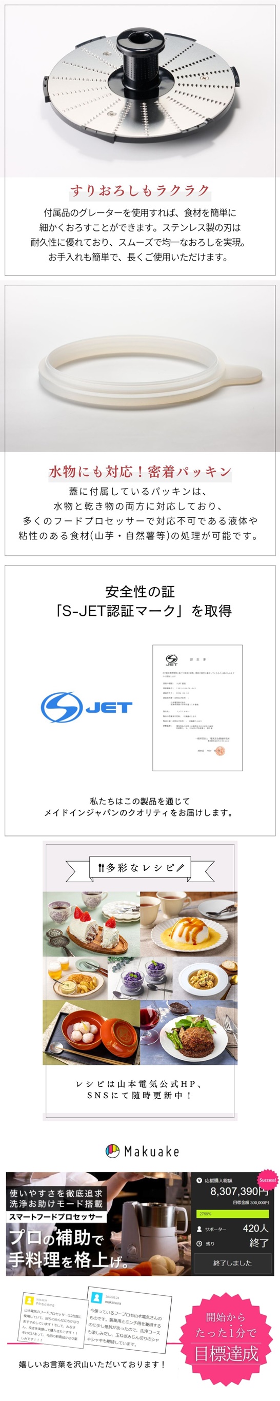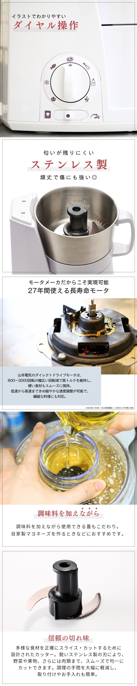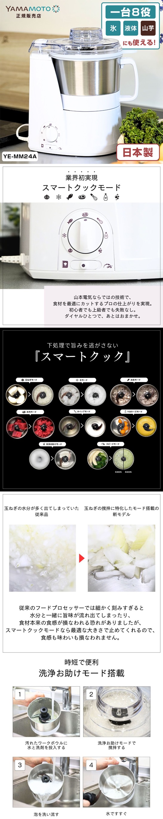 山本電気 YE-MM24A-WH フードプロセッサー 洗いやすい マスターカットプラス 1台8役 氷 山芋 コーヒー豆 離乳食 介護食 無段階スピード 日本製 ホワイト