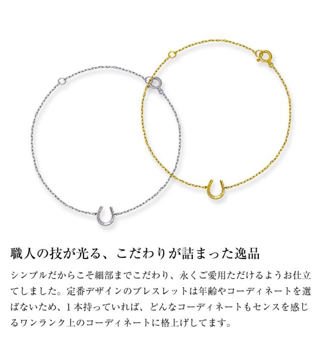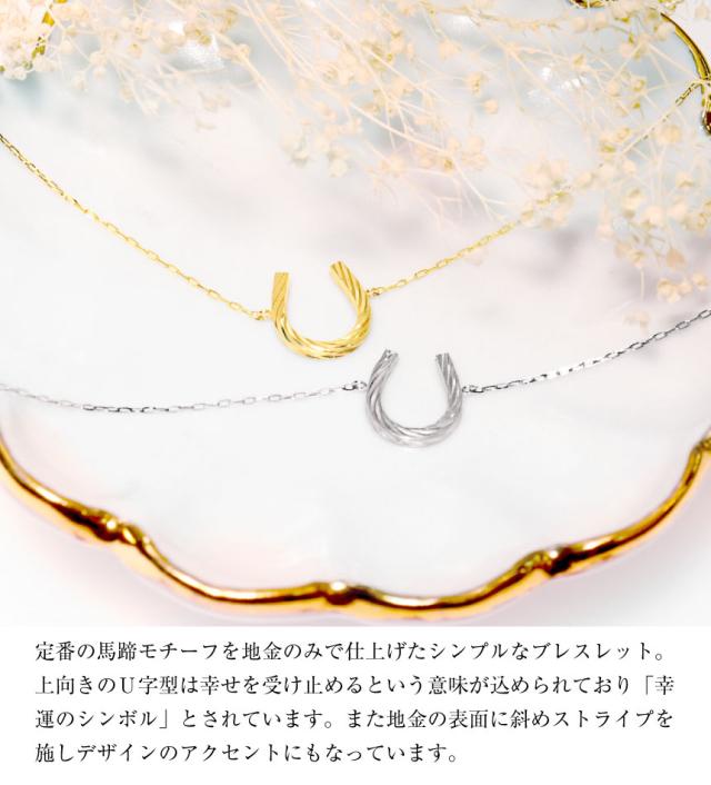 定番の馬蹄モチーフを地金のみで仕上げたシンプルなブレスレット。