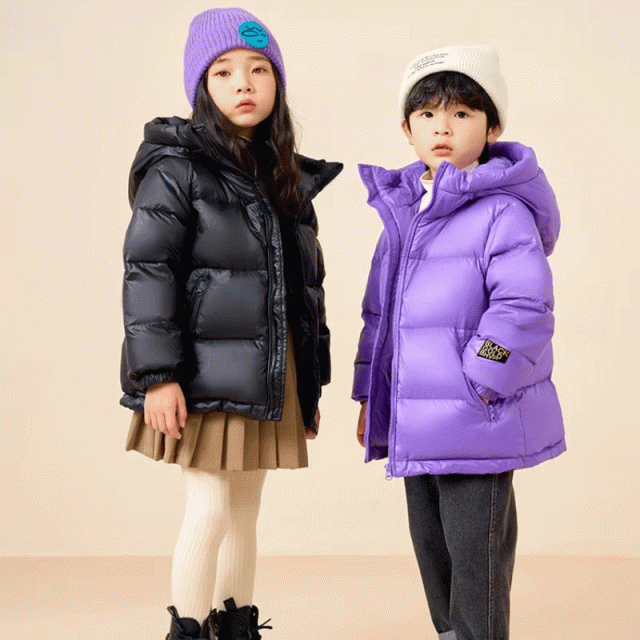 男の子 女の子 キッズ ガール ボーイ ジュニア 子ども ダウンジャケット フード付き 110-170cm カラー色 ブラック パープル