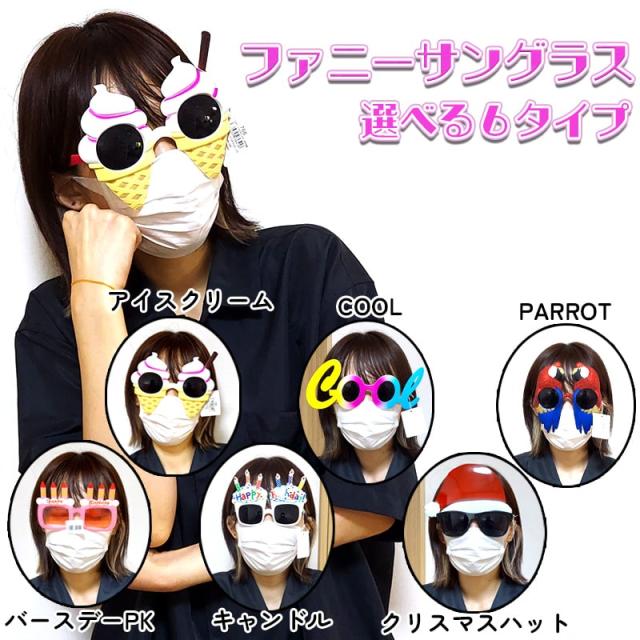 ファニー サングラス かわいい 選べる 6種類 アイスクリーム バースデーキャンドル バースデーケーキ COOL クリスマスハット PARROT