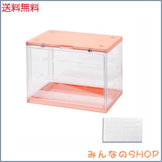 【製品仕様】:組立式のアクリルフィギュアケースです。素材:アクリル、仕様:長さ30×幅17×高さ23cm、室内空間を仕切るために3つのパーティションが含まれています。
