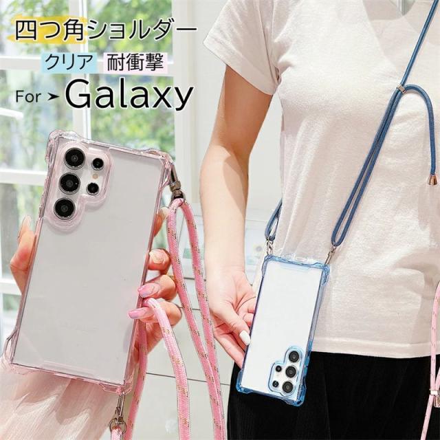 4つ角ショルダー Galaxy A55 5G ケース クリア かわいい 韓国 Galaxy S24 Ultra S23 FE 5G ケース ショルダー Galaxy A52 S22 Ultra A55 A54 A53 5G ケース シンプル 大人 紐 スマホショルダー クリア 四つ角 ストラップホール付き ネックストラップ付き 首掛け 首から下げる