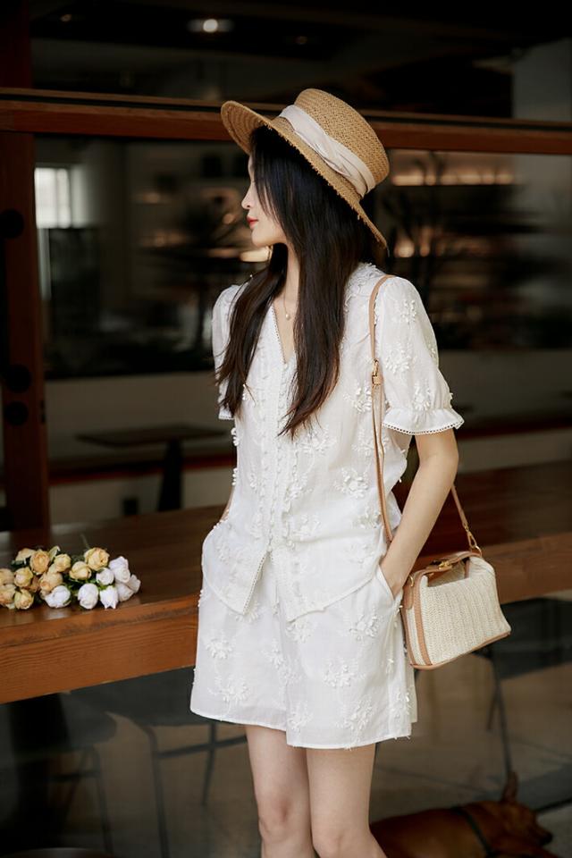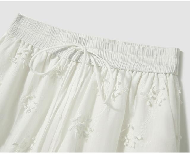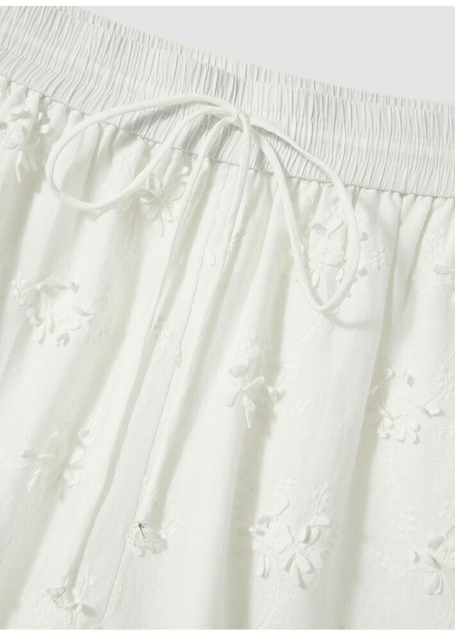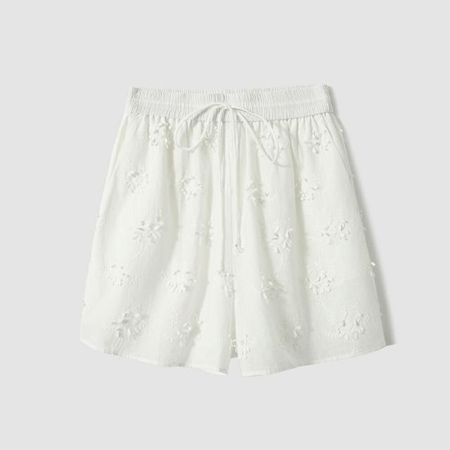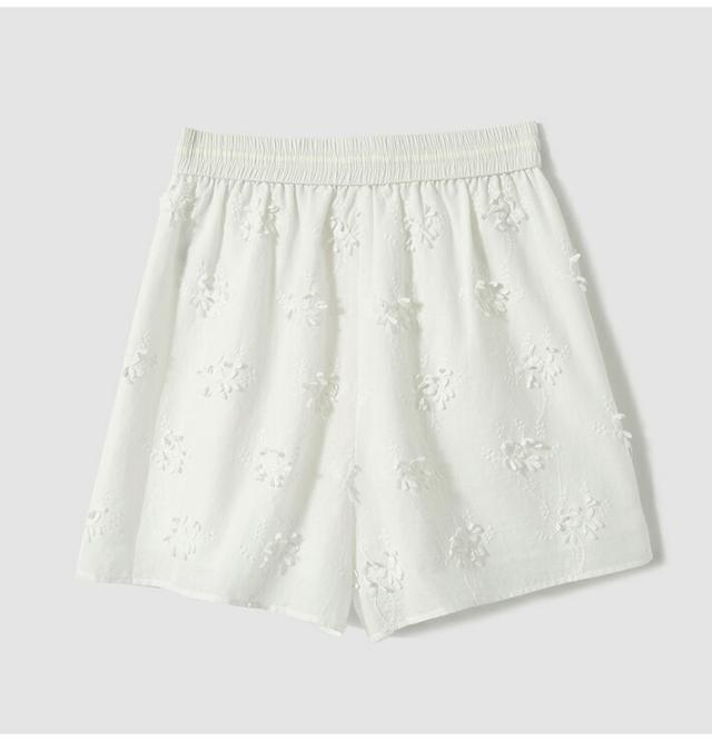 レディース ショートパンツ 刺繍 綿100% フラワー柄 ウエストゴム 涼しい 夏 ホワイト S〜XLサイズ カジュアル 上品 通気性 吸汗性 旅行 リゾート おしゃれ かわいい フリル