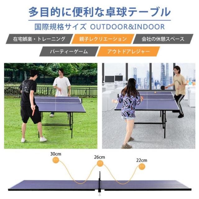 【安定した強固な構造】頑丈な金属フレームと脚で支えられているので、長時間使うことができます。 【コンパクト】折りたたみ式で、スペースを節約し、簡単に置くことができます。 【一人打ちが可能】片方の天板を立てて、壁打ち練習が可能。 一人での練習にも対応します。