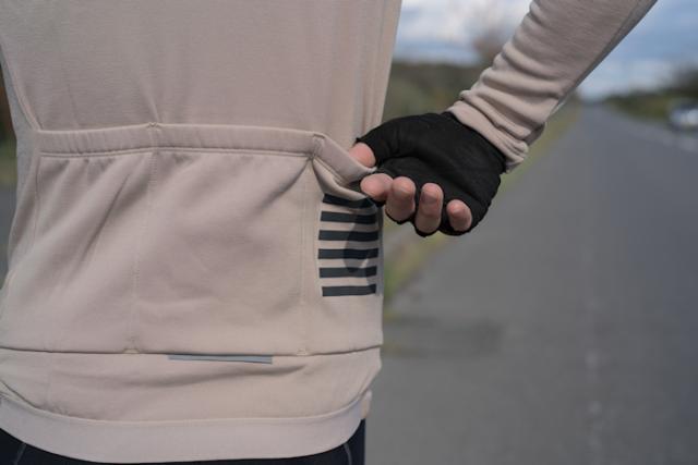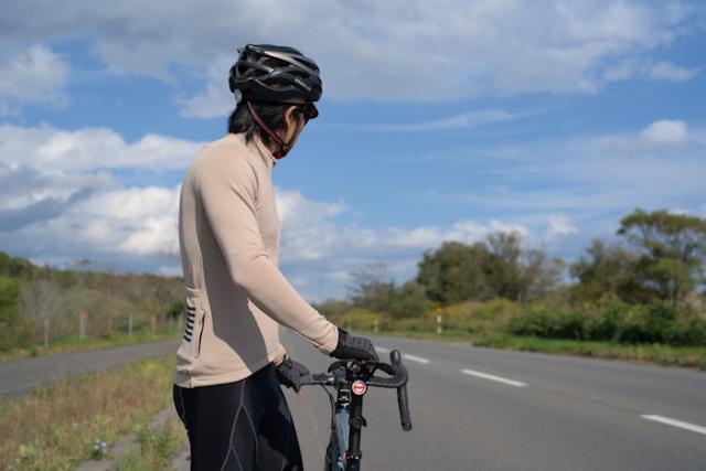 ・腕を伸ばした乗車中の姿勢でも袖口が開かない、やや長めのデザイン。
