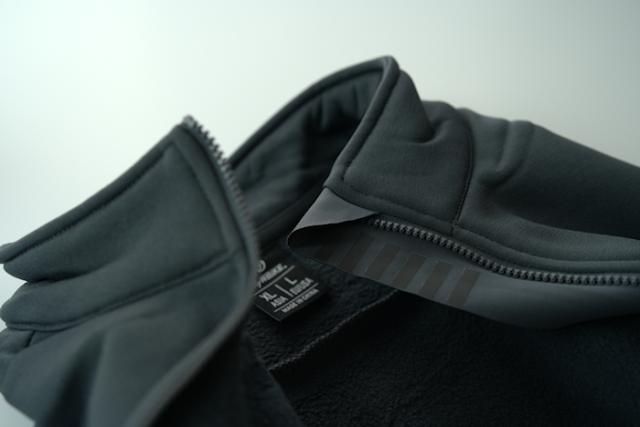・少し高めの襟足、ファスナー部の全長にわたってストームフラップを配置し冷気の侵入を抑制。