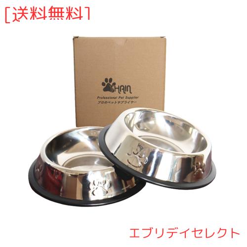 THAIN ペットボウル お皿 犬 猫 ペット用 ステンレス製 こぼれにくい 餌入れ 水入れ 滑り止め 犬食器 猫皿 可愛い肉球柄 2点セット (L)