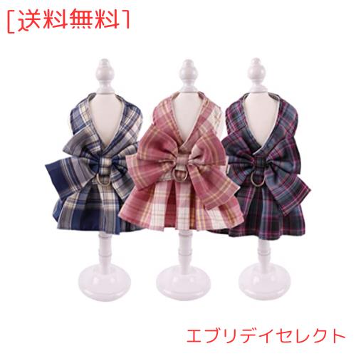 Enkarl 犬 ハーネス 猫 ハーネス リード 可愛い チェック柄 蝶結び メッシュ 通気性 ベスト 犬服 小型犬 猫用 コスチューム 仮装 胴輪 ハ