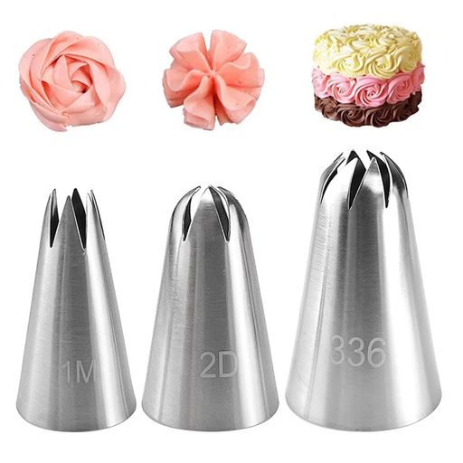 【花の絞り口金】口金はケーキにいろいろなきれいな花型の装飾をすることができて、3種類の異なるサイズの花型の口金があって、自分の好きな花型の装飾を作ることができます。