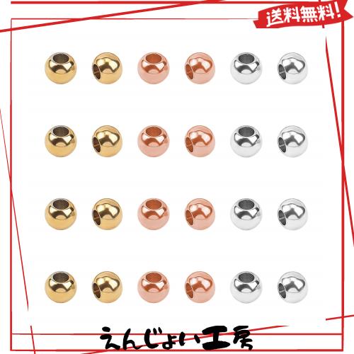 UNICRAFTALE 約120個 3色 6mm ラウンドビーズ 304ステンレス ビーズ 丸玉ビーズ ロンデルビーズ スペーサービーズ 小さなビーズ 金属ビー