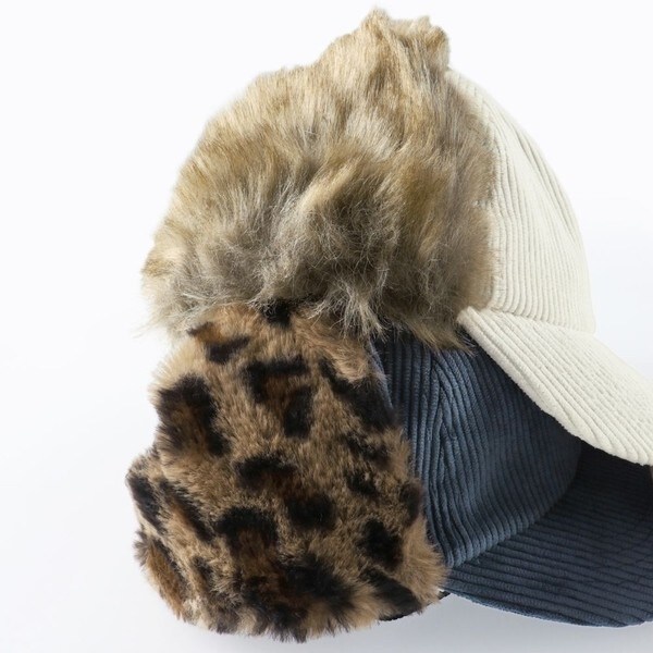 秋冬らしいムードたっぷりのコーデュロイ素材のフライトキャップです。