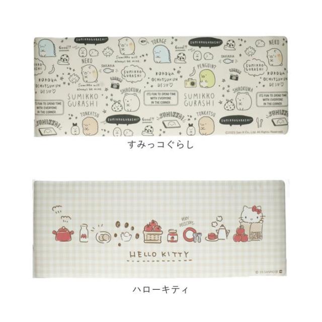【ママさんに嬉しい工夫がいっぱい】毎日の家事が楽しくなるキャラクターが大集合!お掃除楽ちん「PVCキッチンマット 45×120cm」【もっちりクッションで疲れない】程よい厚みとクッション性で、足裏にソフトな踏み心地。長時間の立ち仕事でも足が疲れにくい♪【物を落としても安心】万が一物をマットの上に落とした時でも衝撃を吸収し、フローリングをキズや凹みからガード。【サッとひと拭きで簡単キレイ】水に強い塩化ビニル素材なので、水しぶきや油汚れも布巾などでサッとひと拭きするだけでキレイに。【毎日のお掃除だけで、いつも清潔】カーペットを掃除するように、掃除機でホコリやゴミも簡単OFF!清潔な状態をいつでもキープ。【お洗濯の手間をまるごと解消!】パイル生地のマットとは違いお洗濯は不要!手間だったお洗濯の時間を節約して、家事が時短に!【マット裏側は滑りにくい加工済み】裏側に細かな凹凸加工を施し、床の上でマットがズレにくく、小さなお子様がいるご家庭でも安心。【火を使うキッチンでも安全な素材】万が一マットに着火した際でも燃え広がりにくい、防炎性が高く難燃性に優れた塩ビ素材を採用。【ミニキッチンにぴったりサイズ】おひとり暮らしのお部屋など、ワンルームのミニキッチンでも使いやすい45×120cmサイズ。【世界中で愛されるデザイン】ディズニーやサンリオキャラクターズなど、大人も子どもも魅了する絵柄を豊富にラインナップ。【トレーニングやヨガマットにも】ふんわり身体に優しいクッション性で、ご自宅でのプチ筋力トレーニングやヨガマットにも大活躍。