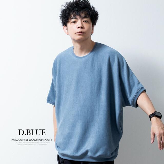 サマーニット メンズ 半袖 ドルマン サマーセーター ストレッチ ドルマンスリーブ ミラノリブ