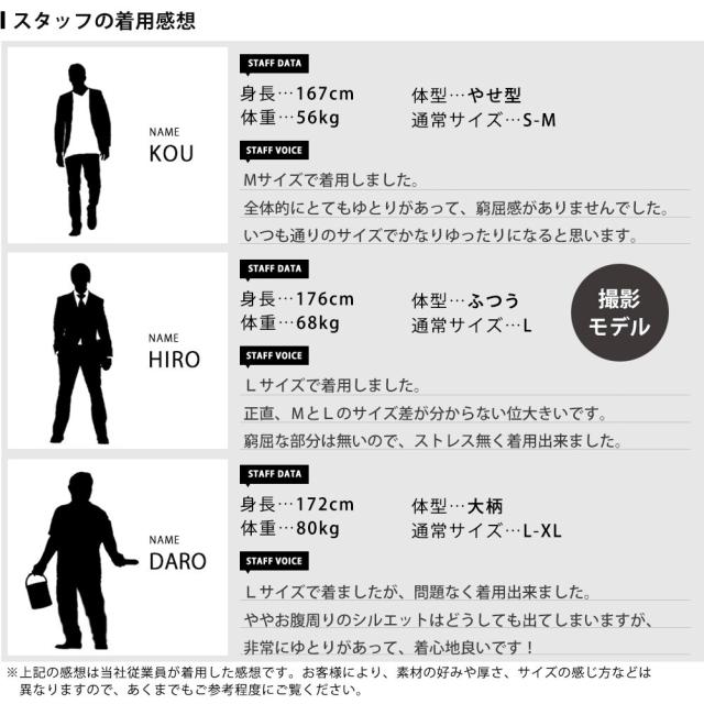 モデルサイズ: 身長:176cm 体重:68kg 普段の着用サイズ:L 着用サイズ:L