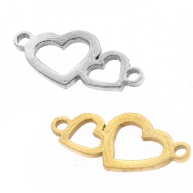 2個のオープンハートの両側にマルカンをつなげれる丸穴ありのコネクター用DIYパーツ。