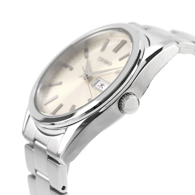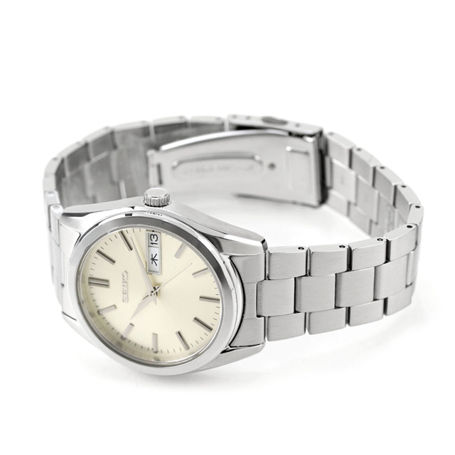 正規品 7年保証キャンペーン 送料無料 セイコーセレクション メンズ アナログクオーツ デイデイトSシリーズ メンズ 腕時計 SBTH007 SEIKO SELECTION アナログ アイボリー ◆セイコーセレクションから、金属ダイヤルの美しさを活かした、37.4mmの小径クオーツモデルが登場。幅広い年齢層の方が手に取りやすいデイリーウオッチを追求したモデルとなっております。ガラスにはサファイヤガラスを採用。内面無反射コーティングを施し、使いやすさにこだわりました。ケースは縦筋目と鏡面を使い分けることでシャープなコントラストを実現。細縁で広い見切りを確保し、すっきりと洗練されたケースとなっております。ガラス縁の上面の傾斜角度を抑えることで、クラシカルな印象を与えつつ腕時計らしい精緻感をもたらします。ダイヤルは、金属らしい放射目が際立つベースに、伸びやかに広がる略字と植え窓を採用しています。 発売日:2024年11月発売