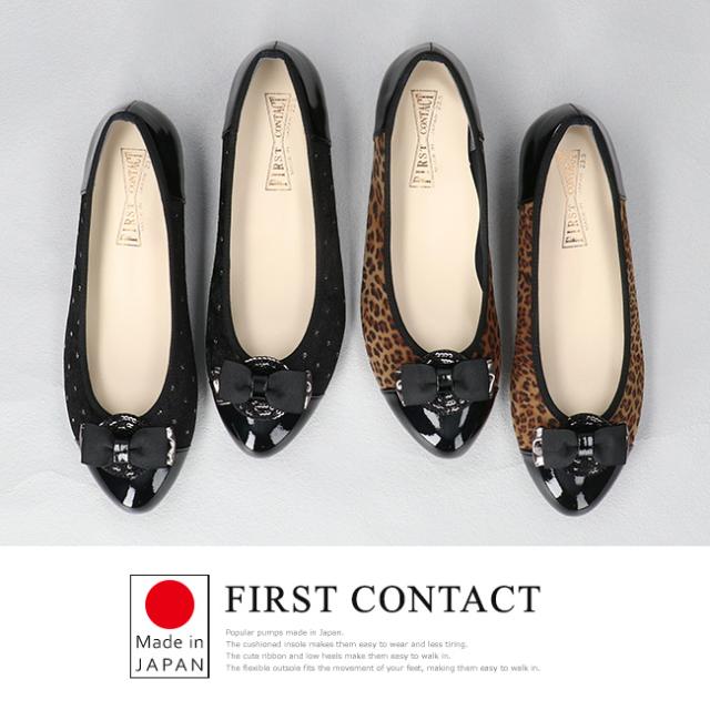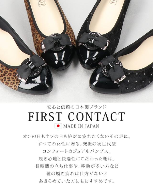 ファーストコンタクト パンプス 痛くない 歩きやすい ローヒール 軽量 低反発 おしゃれ 黒 39164 日本製 レディース バレエシューズ 靴