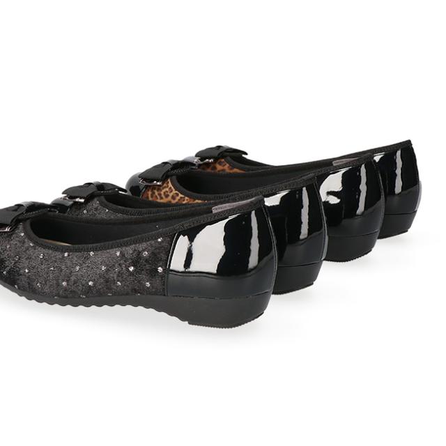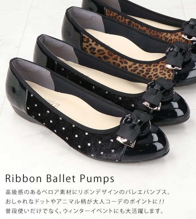 高級感のあるベロア素材にリボンデザインのバレエパンプス