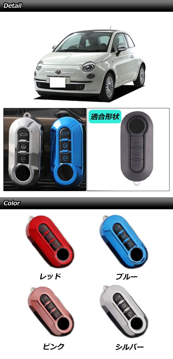 キーケース シルバー TPU フィアット アバルト 汎用 500 パンダ 595 など AP-AS1045-SI
