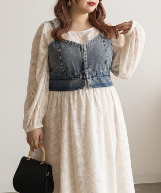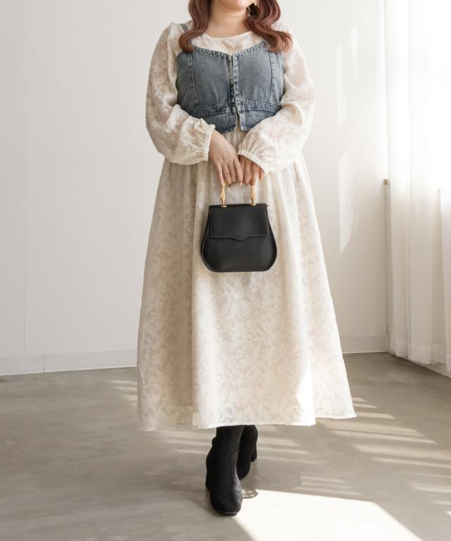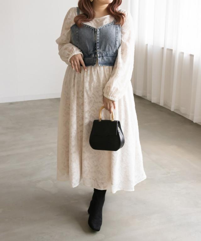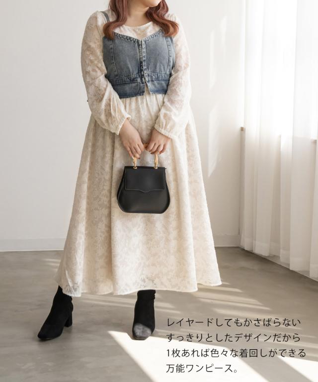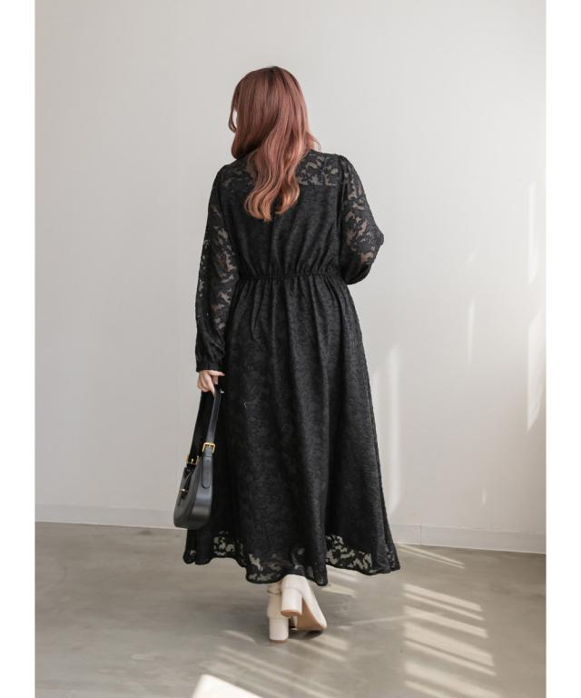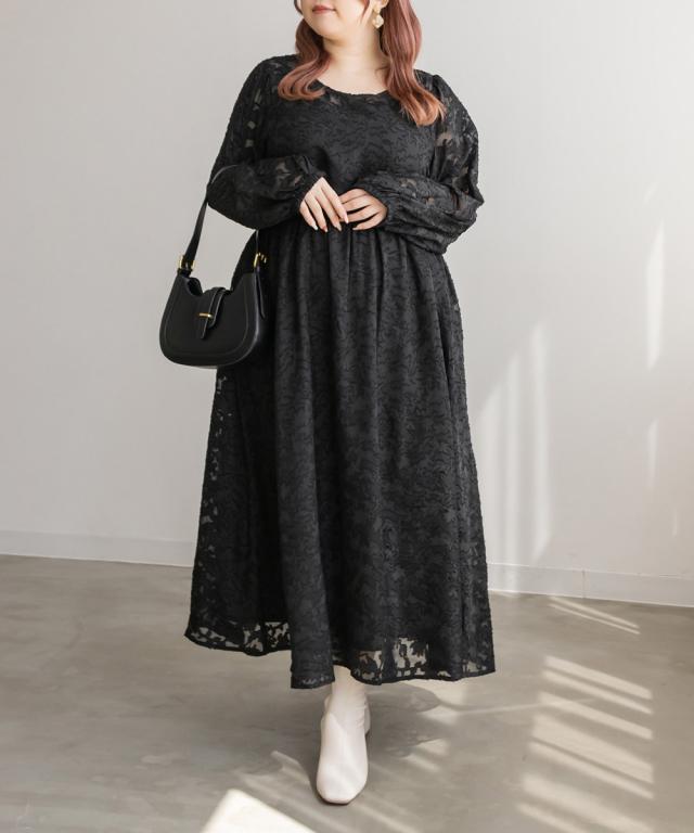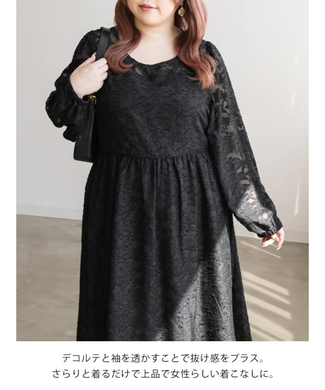 大きいサイズ/レディース/LL/3L/4L/CLETTEオリジナル★ジャガード花柄シアーワンピース