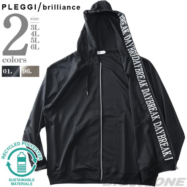 大きいサイズ メンズ PLEGGI プレッジ ジャガード フルジップ パーカー リサイクルポリエステル使用 64-11572-2