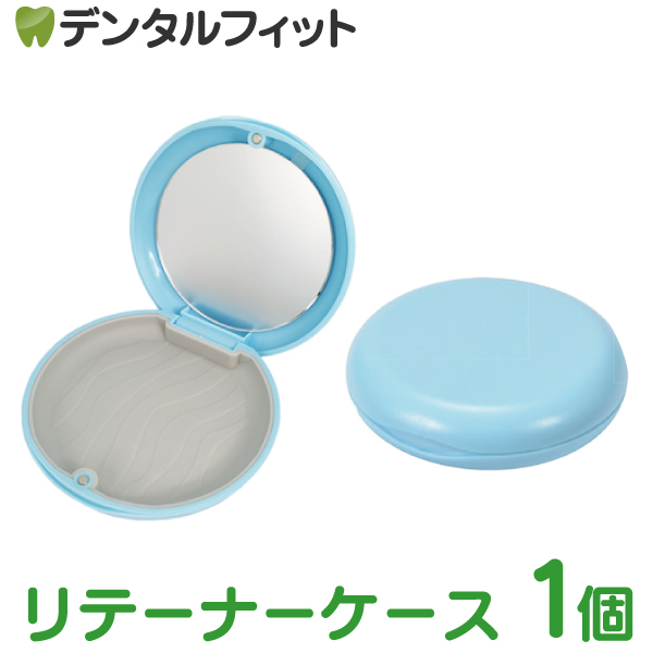 【メール便選択で送料無料】リテーナーケース ブルー 1個 ミラー付き マグネット式 磁石 軽量 コンパクト インビザライン ピルケース リテーナー シンプル 衛生的 鏡付き 薄型タイプ
