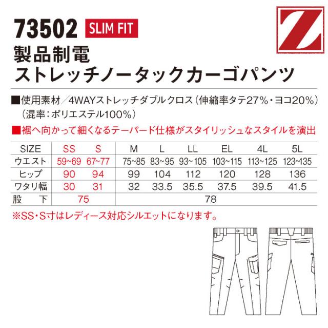 自重堂 Z-DRAGON カーゴパンツ 秋冬 メンズ レディース ストレッチ 帯電防止 JIST8118 作業服 仕事服 おしゃれ ズボン jd-73502