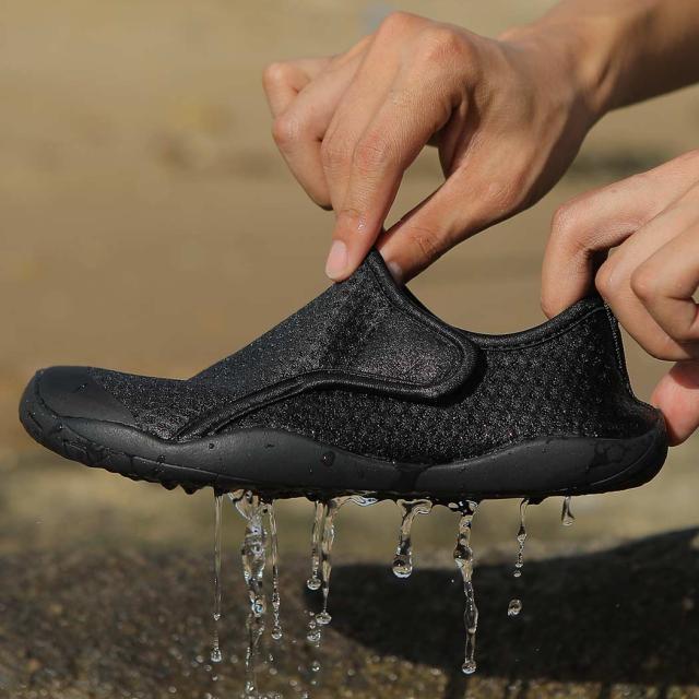 秋新作 マリンシューズ メンズ レディース 男女兼用 水陸両用 アクアシューズ スポーツサンダル 靴 夏 アウトドア メッシュ生地 通気性 インソール ハニカム構造 マジックテープ アッパー 屈曲性 靴底 排水 滑りにくい 黒 海
