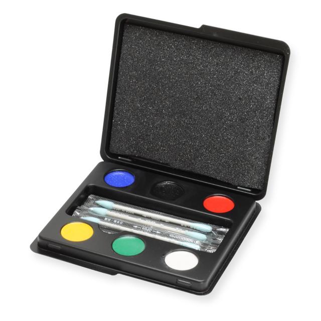・セット内容フェイスペイント&ボディペイント用キットパス6色青、黒、赤、黄、緑、白、専用綿棒×3本