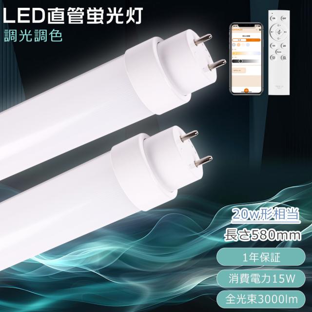グロー式工事不要 LED蛍光灯 20W形 直管 調光調色 消費電力15W 3000lm G13口金 LED蛍光管 直管LEDランプ リモコン スマホ操作 LED直管蛍光灯 58cm 蛍光灯 LED 直管 調光 直管型 LED蛍光灯 スマートライト 蛍光灯 LED 照明 店舗 施設照明 1年保証