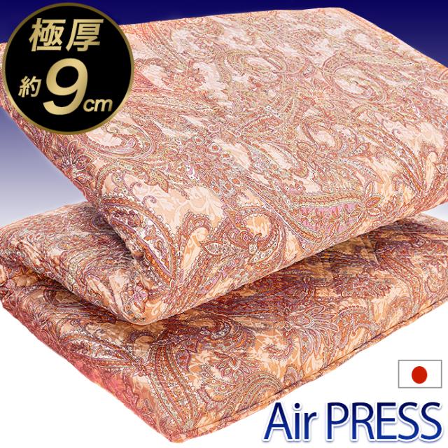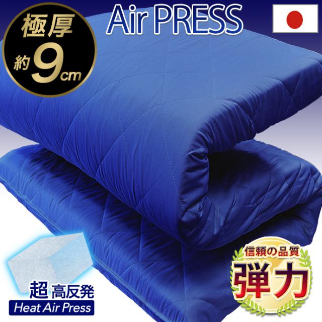 日本製 敷き布団 シングル 極厚 約 9cm 最大 高反発 3層式 固綿 硬め 固め 厚さ エアープレス FT 厚さ 消臭 抗菌 防ダニ 畳 床使用 敷布団 ホテル仕様 ホテルライク 【硬め】【固め】【中芯重量160%UP】