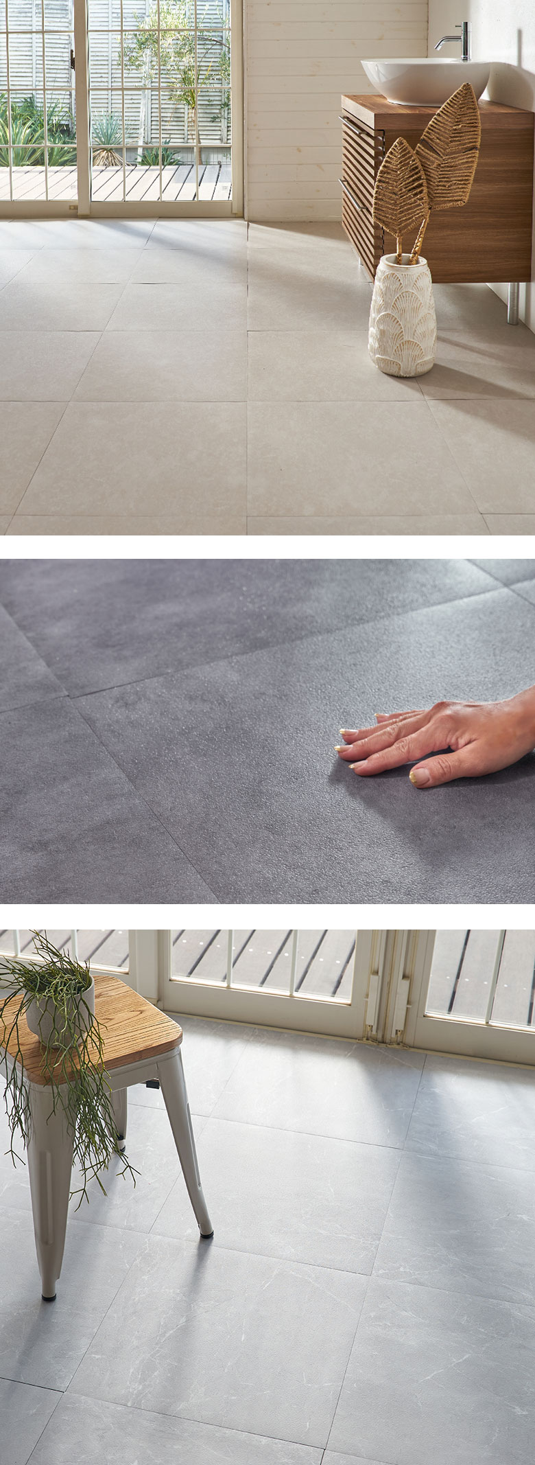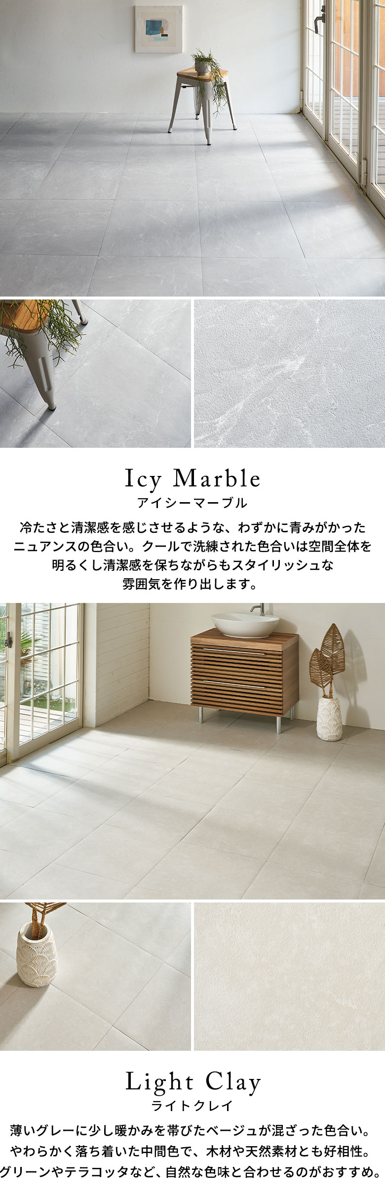 ・モルタル風や大理石調など、豊富なデザインバリエーション。