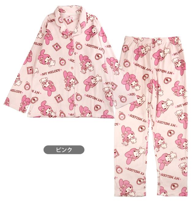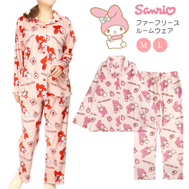 Sanrio MY MELODY ファーフリース ルームウェア 上下セットアップ レディース レッド ピンク M L SAN-1742 マイメロディ No.2705