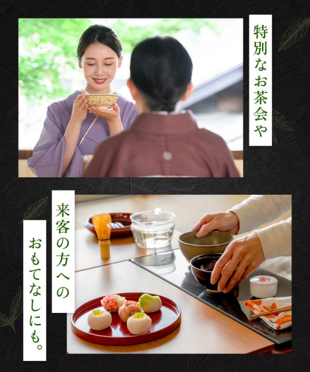 茶道でもご利用いただける「一番茶抹茶」で、美しい緑色としっかりとした泡立ちが特徴です。