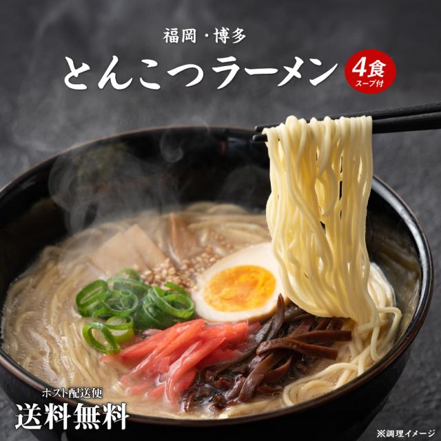 送料無料 豚骨ラーメン4食 九州 博多 ラーメン らーめん ポイント消化 食品 お試し ポイント消費 グルメ 拉麺 食品 生麺 ご当地