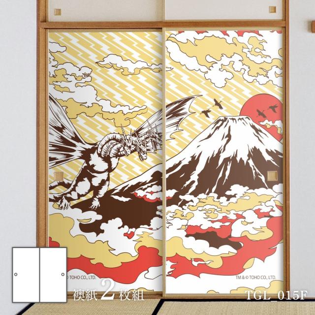襖紙 ゴジラふすま紙 和ゴジラ 富士の日之出とキングギドラ TGL_015F 2枚1組 水で貼るタイプ 幅約91cm×長さ約182cm アサヒペン