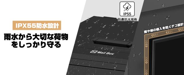 【防水・防塵&盗難防止】「防水 宅配ボックス」として、IP55の独自の防水・防塵構造により、雨水やホコリの侵入を防ぎます。 高い防犯性を誇るシリンダープッシュ錠は、押すだけで簡単に施錠でき、操作性と防犯性を両立。 全体に強度のある亜鉛メッキを施しており、ひび割れや摩擦に強い素材です。防水・防塵・防錆性も優れており、雨や強風にも耐えうる構造 で、長期間の使用にも耐えられます。 さらに、上部投函口とメール便投函口には、細部まで丁寧に仕上げた凸凹設計が施されており、雨水の侵入をしっかり防ぎます。