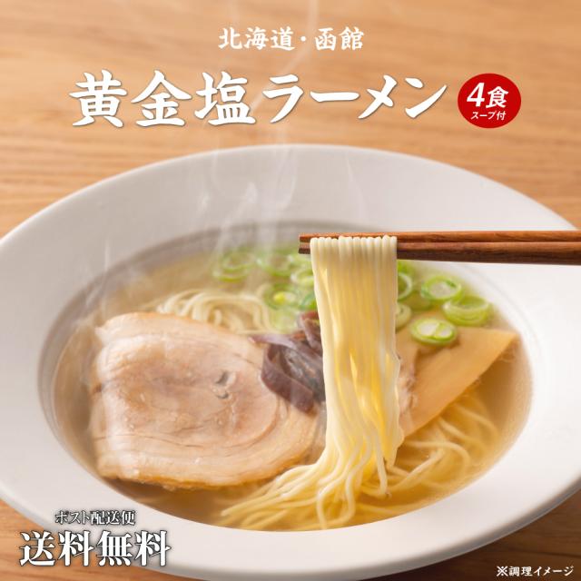 送料無料 黄金塩ラーメン4食 北海道 ラーメン らーめん ポイント消化 食品 お試し ポイント消費 グルメ 拉麺 食品 生麺 ご当地