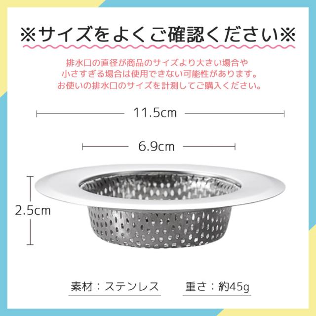 上記のサイズより大きい排水口や小さすぎる排水口には使用できない場合がございます。
