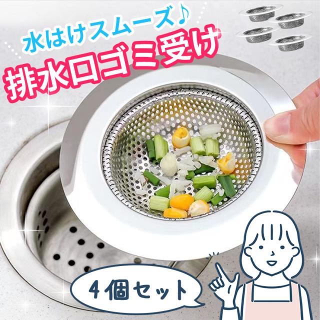 排水口 ゴミ受け 4個セット 排水溝 排水カゴ キッチン シンク 生ごみ ゴミ ごみ 生ゴミ ステンレス ネット 料理 ステンレスゴミ受け 排水口ゴミ受け 流し 台所 洗面台 髪の毛 お風呂 パンチング 取り キャッチ ヘアキャッチャー 掃除 清潔 直径11.5cm 水捌け 水はけ SNSで話題
