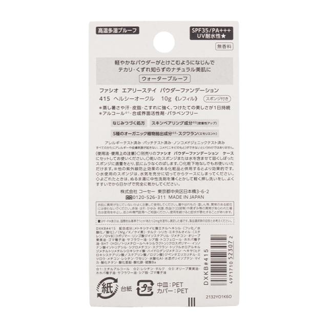 FASIO ファシオ エアリーステイ パウダーファンデーション 415 ヘルシーオークル 10g レフィル SPF35 PA+++ 無香料 テカり防止 UVカット[ギフトラッピング対応]