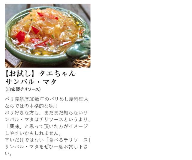 ・お試しタエちゃんサンバル・マタ(自家製チリソース)10g(1個)