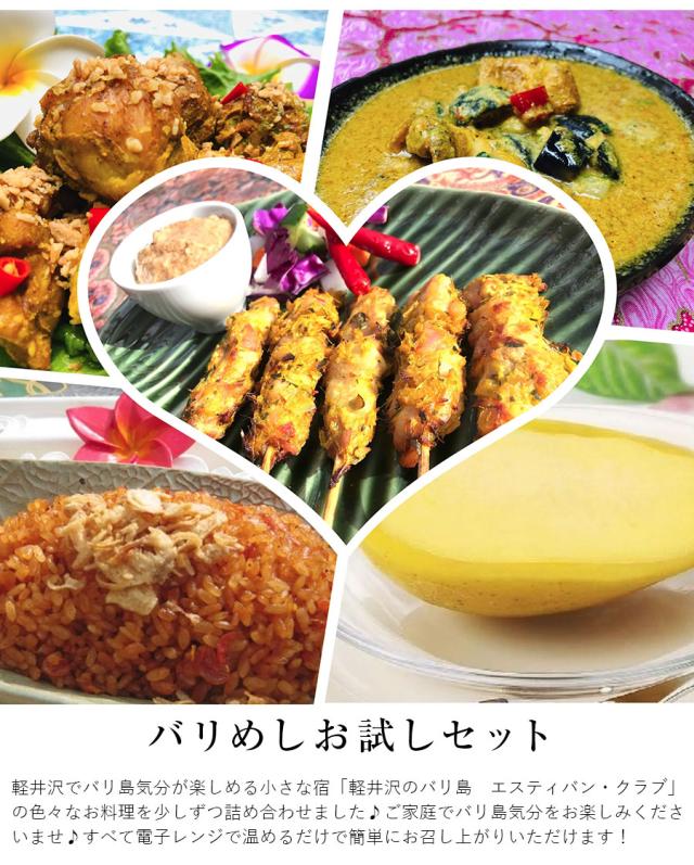 バリめしお試しセット インドネシア アジア料理 アジアン ナシゴレン ココナッツカレー サテ サンバル チキン マンゴー バリめし屋 軽井沢 ホムパ
