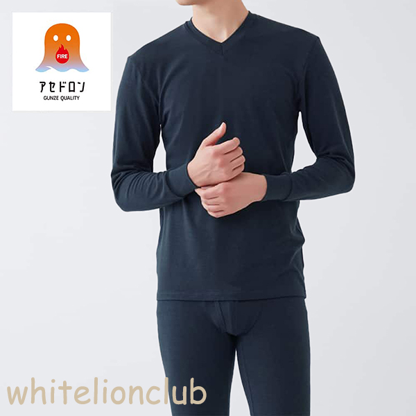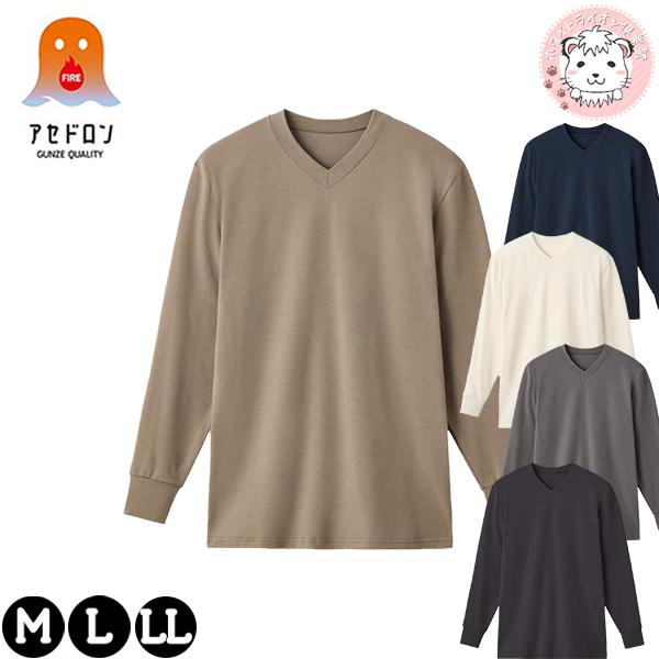グンゼ アセドロン ファイヤーアセドロン 保温 吸湿発熱 Vネック 秋冬 メンズ アクリル MHA209 M/L/LL Vネックロングスリーブシャツ インナー GUNZE