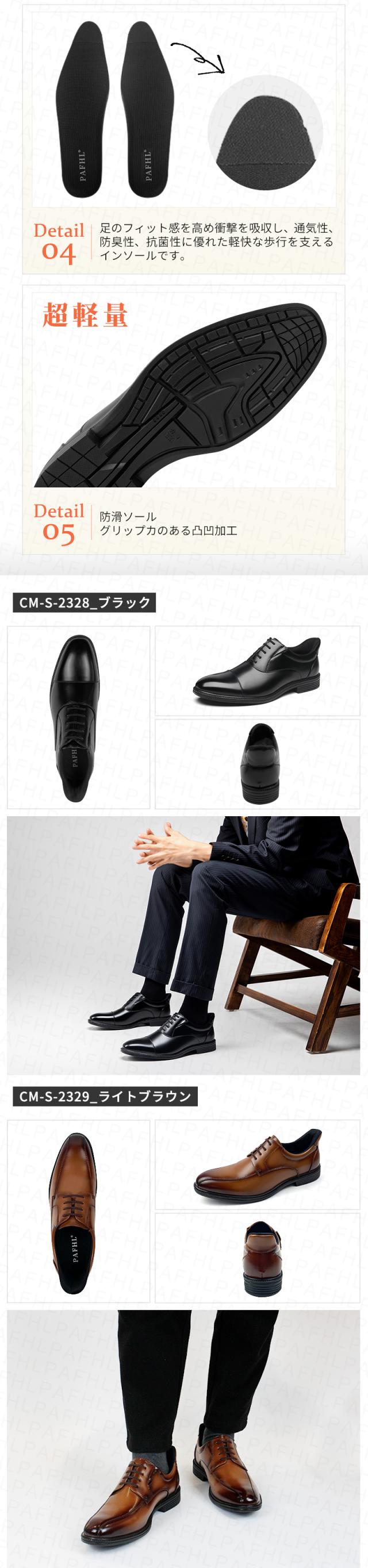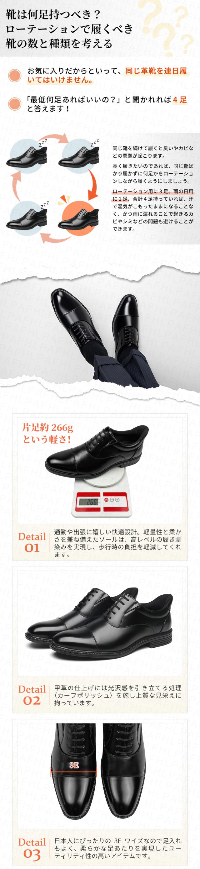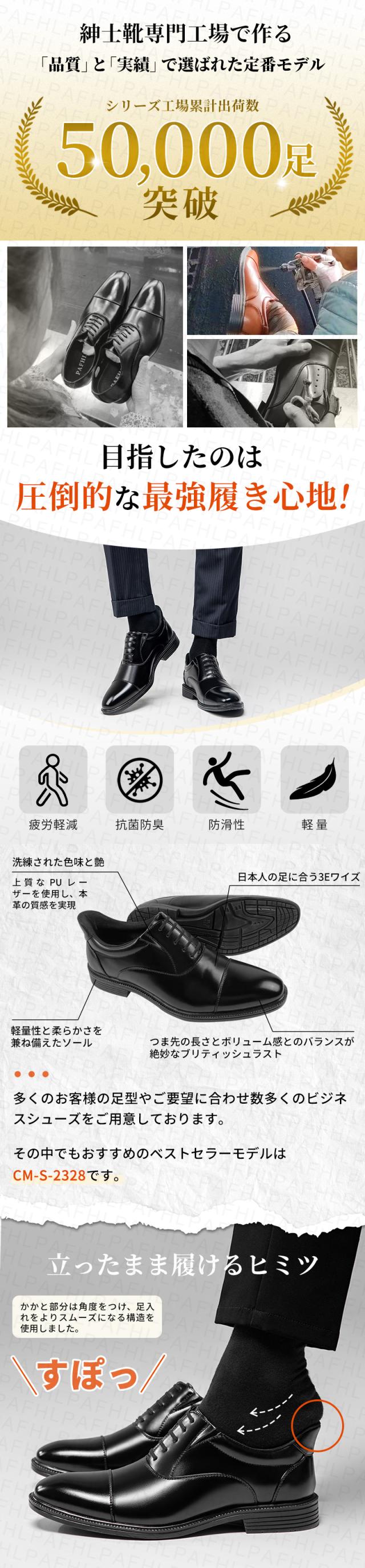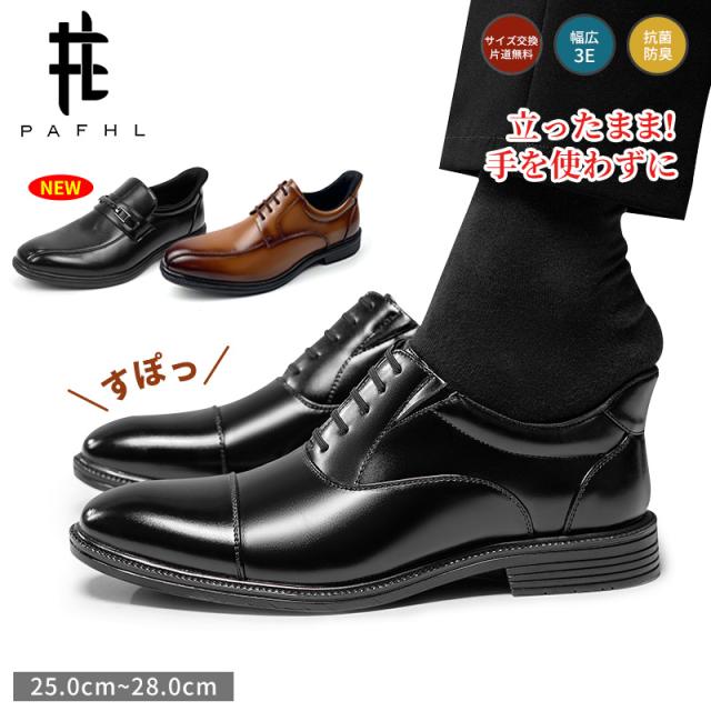 PAFHL革靴 メンズ 立ったまま履ける ビジネスシューズ 超軽量 幅広 3E 防臭 抗菌 疲れない 滑り止め 通気性 光沢感 仕事 紳士靴 PUレザー ストレートチップ ブラック 25.0cm-28.0cm