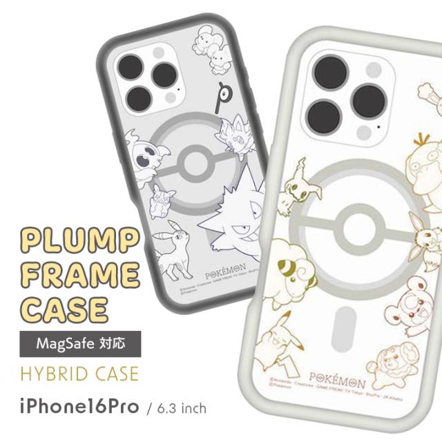 iPhone16Pro MagSafe対応プランプフレームケース ポケットモンスター アイボリー ブラック pokemon ピカチュウ ゲンガー コダック メリープ ミミッキュ ヨマワル メール便送料無料