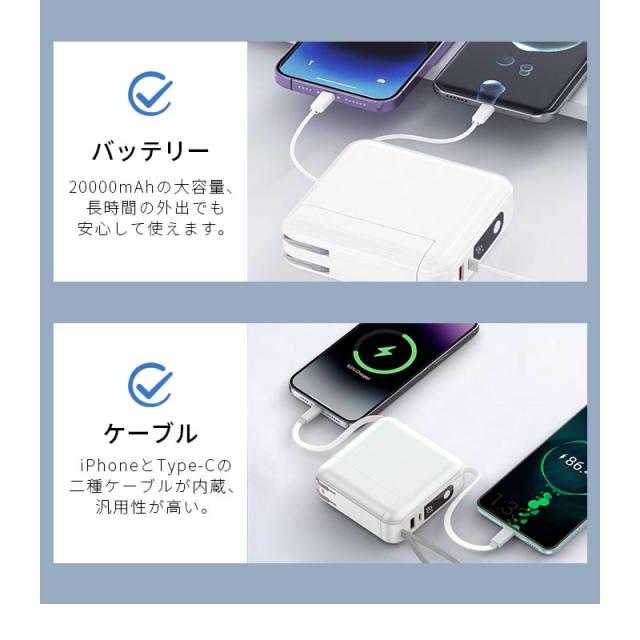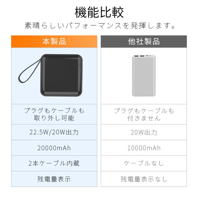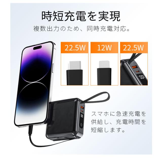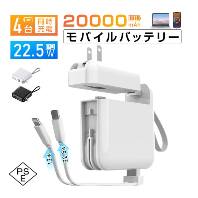 モバイルバッテリー 大容量 20000mAh PD 22.5W 防災電源 急速充電 iPhone17/16/15充電 3in1 コンセント一体型 4台同時充電 折畳プラグ ケーブル取り外し可能 【PL保険加入済み製品・安心】