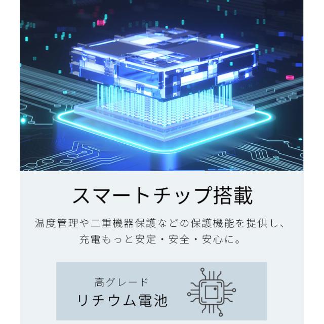 また、パススルー機能搭載、カフェでコンセントから電源をとりながらデバイスを同時に充電することが可能。ちなみに接続した端末を自動で認識して、それぞれの端末に最適な電流を流してくれる技術が付いています。スピーディーに電力チャージできちゃう利便性がまた魅力の1つです。